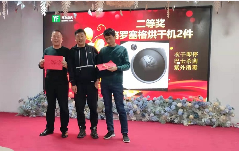 進(jìn)行簡(jiǎn)單的餐敘交流后就進(jìn)入了熱鬧的年會(huì)環(huán)節(jié),公司員工踴躍報(bào)名參加的年會(huì)表演受到大家一致好評(píng),每位表演者都情緒激昂,帶動(dòng)了整個(gè)晚會(huì)的活力和氛圍,表演者來(lái)自公司的不同的年齡段,從50后到90后,代表不同的時(shí)代人,也抒發(fā)了不同年代的情懷。即使唱歌的水平各有參差,但帶給我們的驚喜和欽佩是同等的。抽獎(jiǎng)環(huán)節(jié)和有獎(jiǎng)競(jìng)猜環(huán)節(jié)更是將年會(huì)的氣氛推向高潮,抽獎(jiǎng)環(huán)節(jié)共設(shè)置三輪,獎(jiǎng)品分別是:一等獎(jiǎng)華為手機(jī)1份、二等獎(jiǎng)滾筒烘干機(jī)2份、三等獎(jiǎng)美的取暖器6份,互動(dòng)獎(jiǎng)品提供了藍(lán)月亮洗衣液共10份,每個(gè)人還獲得一份禮包作為伴手禮。